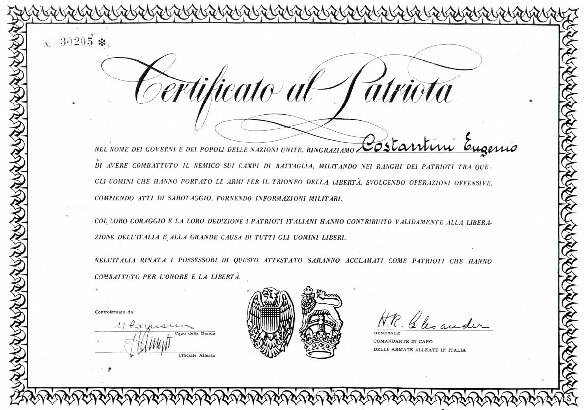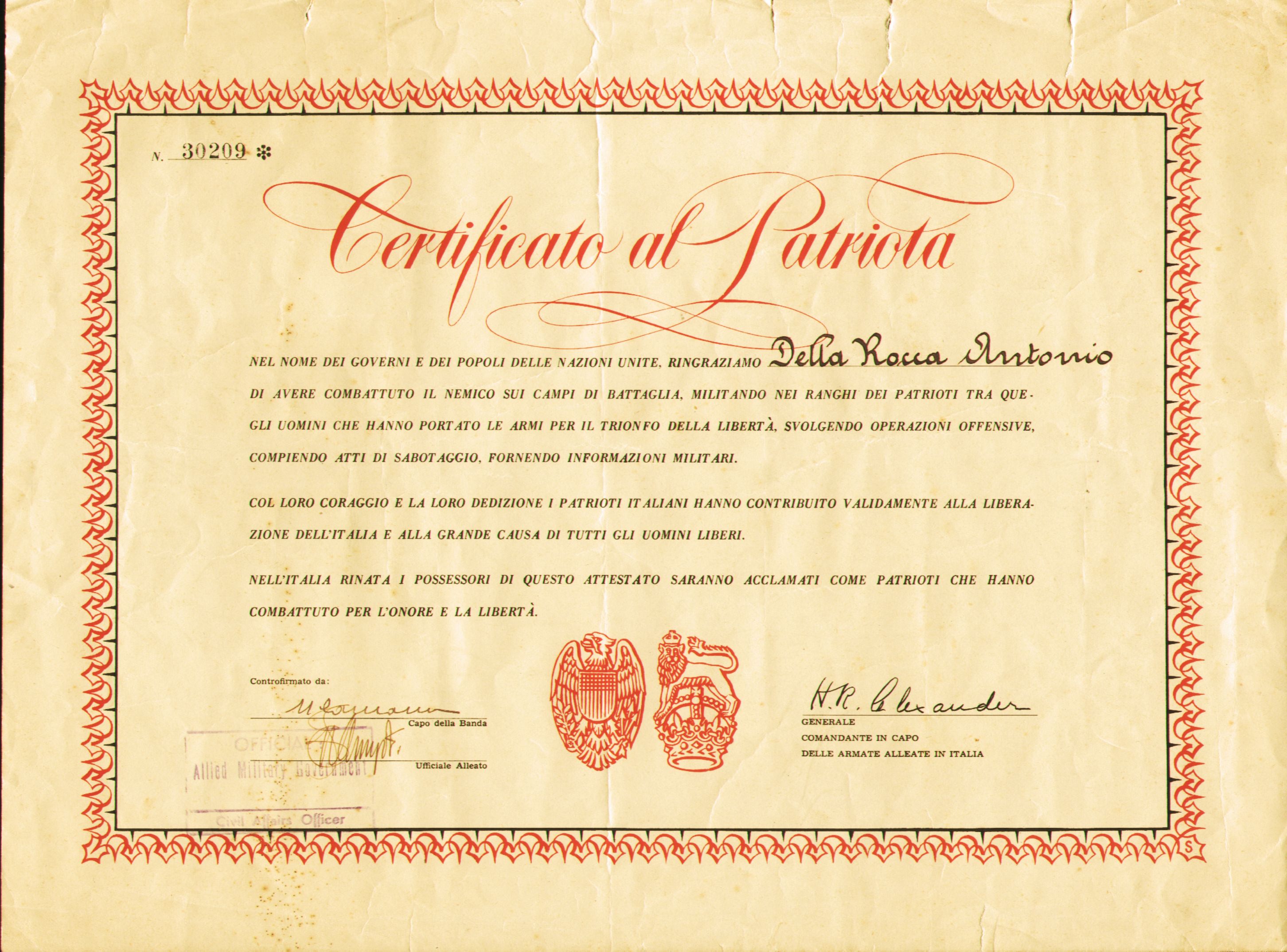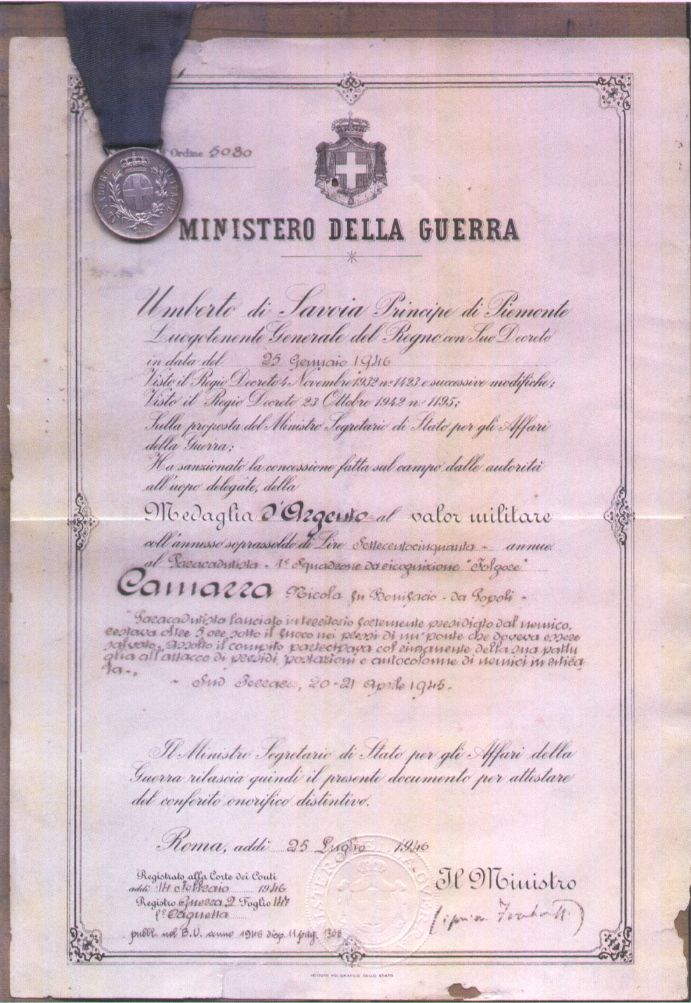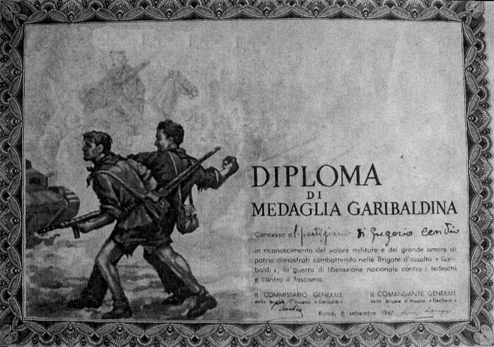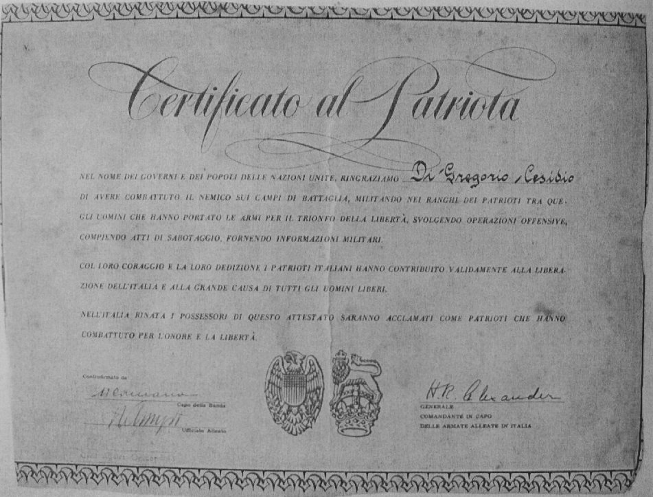 Cesidio Di GregorioDiploma di Medaglia garibaldina
