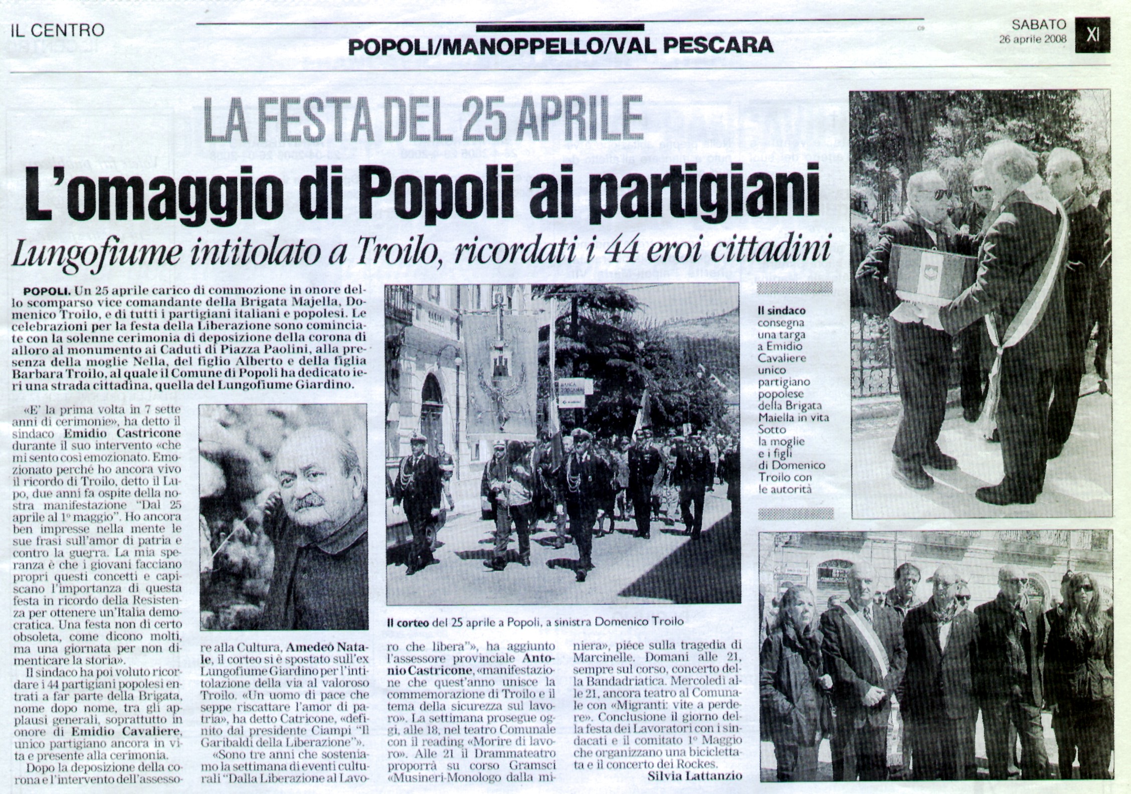 "L'omaggio di Popoli ai partigiani"- Il Centro 26 aprile 2008 sezione Pescara